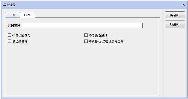 【报表属性】-【导出设置】菜单确定与导出PDF和Excel相关的设置: