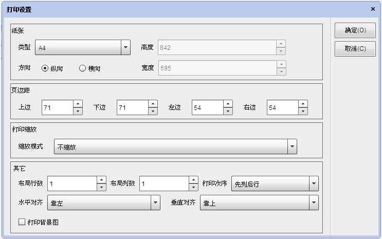 可以通过菜单工具栏【报表属性】-【打印设置】菜单,对页面打印效果进行整体控制: