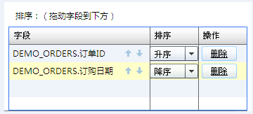 (4) 从左侧拖拽需要排序的字段至“排序”区域,并选择排序方式,即可对字段进行排序,还可以通过“上移”或“下移”按钮来设置排序的优先级。