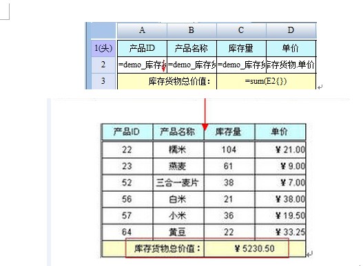 1. 设置A2单元格的表达式:=demo_库存货物.Select(产品ID)