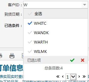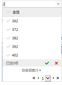 4、在展现界面点击输入框可弹出编辑风格值设置组件,用户可直接勾选需要设置的数据或或通过关键字在下拉数据集进行数据过滤后对需要的数据进行勾选,再点击右下角【√】按钮,此数据即可显示在输入框中。