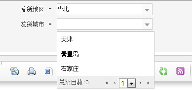 例如:“城市”字段设置为数据集选择编辑风格,并为其设置关联字段为“地区”,可达到下拉选项仅显示为华北地区的城市的效果,如下图所示: