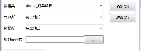 举例:地区下拉框和城市下拉框的关联过滤。这里假设地区下拉框所在的单元格为A2,城市下拉框所在的单元格为B2。首先点击引用数据集,选择“demo_订单数据”数据集。 准备好数据集后,给A2单元格设置“下拉数据集”编辑风格,并设置显示列和数据列如下图所示。
