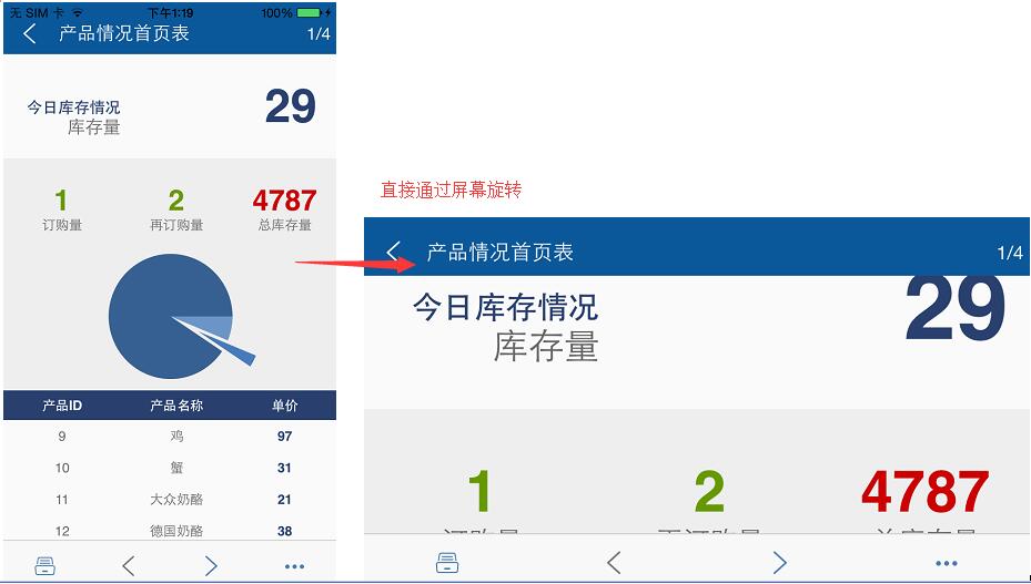 客户端横屏展现。有的报表适合纵向展示,有的报表适合横向展示。当纵向展示时,横向数据不能完全展现,此时可以选择横屏展现,扩大屏幕的横向显示范围,便于客户数据浏览。