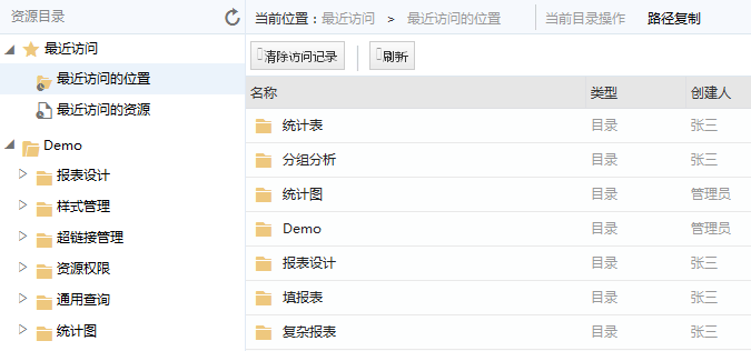 资源管理器-资源中心-最近访问的位置/最近访问的资源