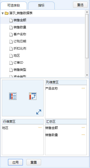 汇总字段选择方法与行列维度选择方法相同。
