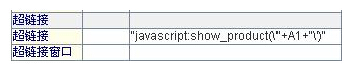 //首先,在网页的Javascript脚本里写入如下函数: function show_product(id){ var strurl='/api/jsp/3.5.jsp?raq=/api/wangge4_sub.raq&arg1='+id; window.open(strurl,"_blank"," Width=650 ,Height=500,top=100,left=100"); } //然后在报表触发单元格里写入如下超链接表达式: